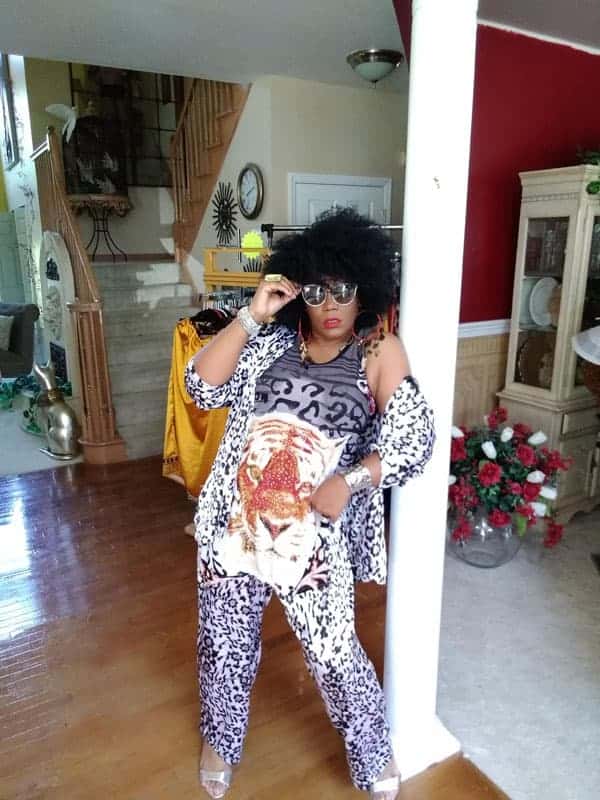 This Beautiful two-piece animal print outerwear would look good in or out of the house. put on a graphic top to bring this look all together and a pair of heels.